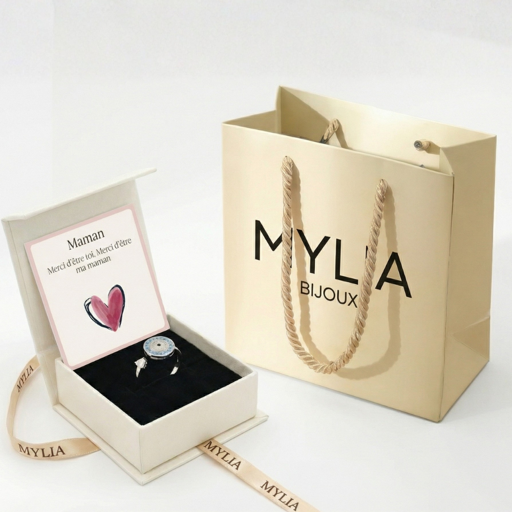 Chaque bague est livrée dans un écrin premium, avec une carte message — prête à offrir.