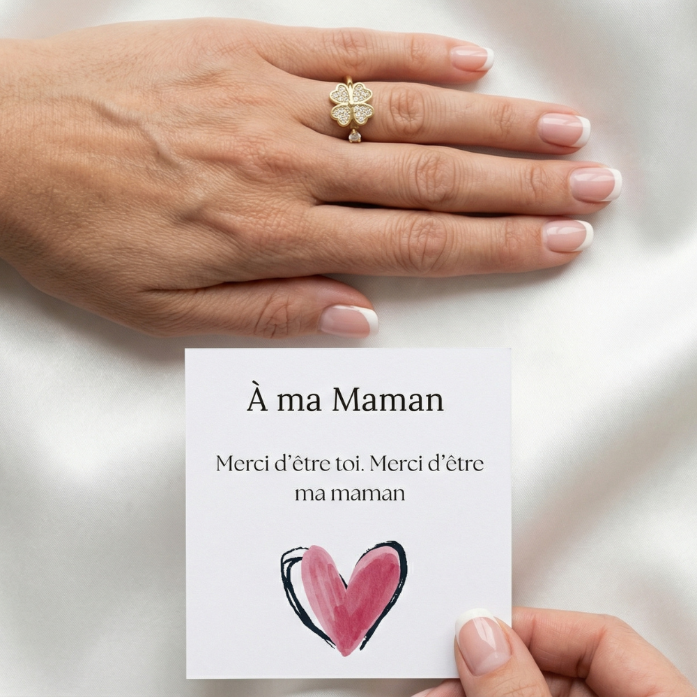 Bague Anti-Stress Rotative Ajustable - Trèfle De Chance - Pour Maman